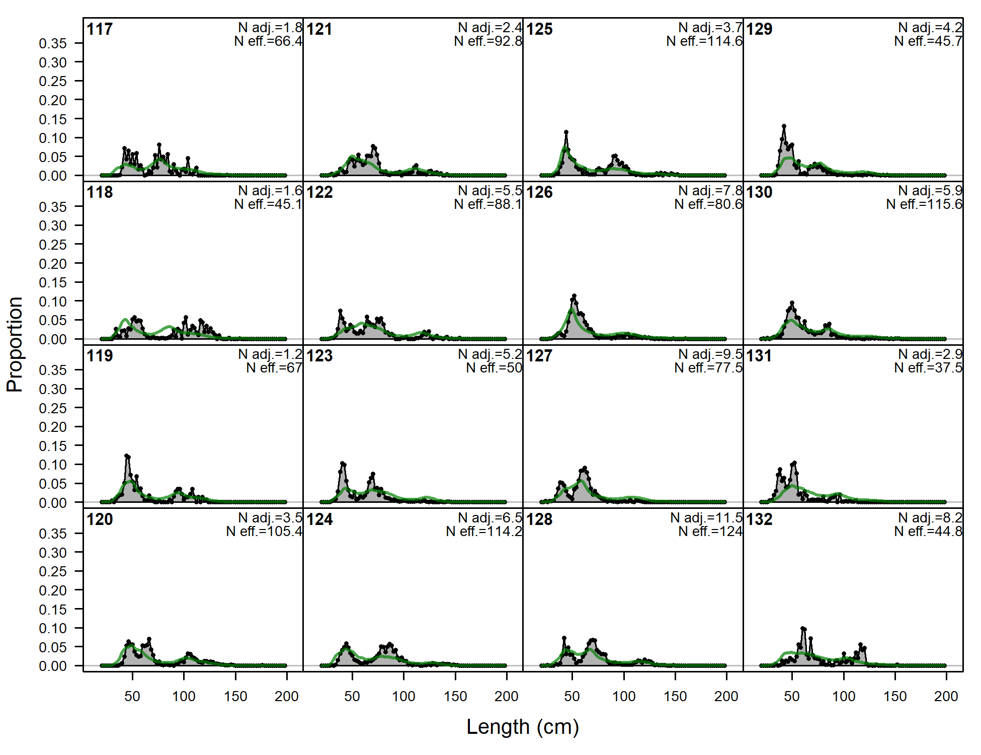 Length comps, whole catch, A3-LL-n (plot 1 of 3).