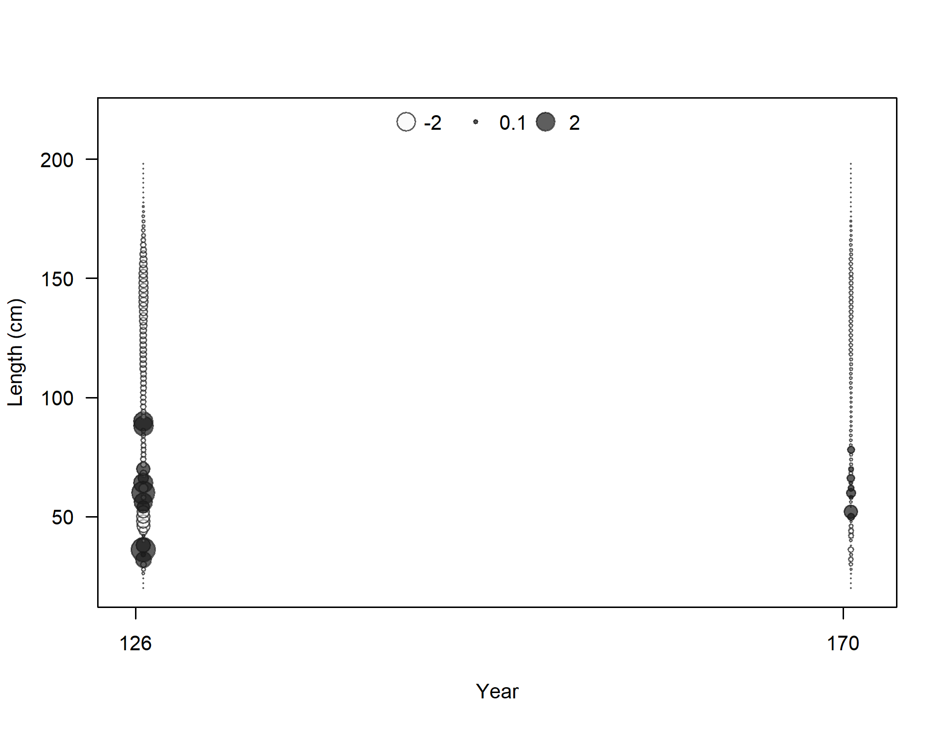 Pearson residuals, comparing across fleets (plot 1 of 4)