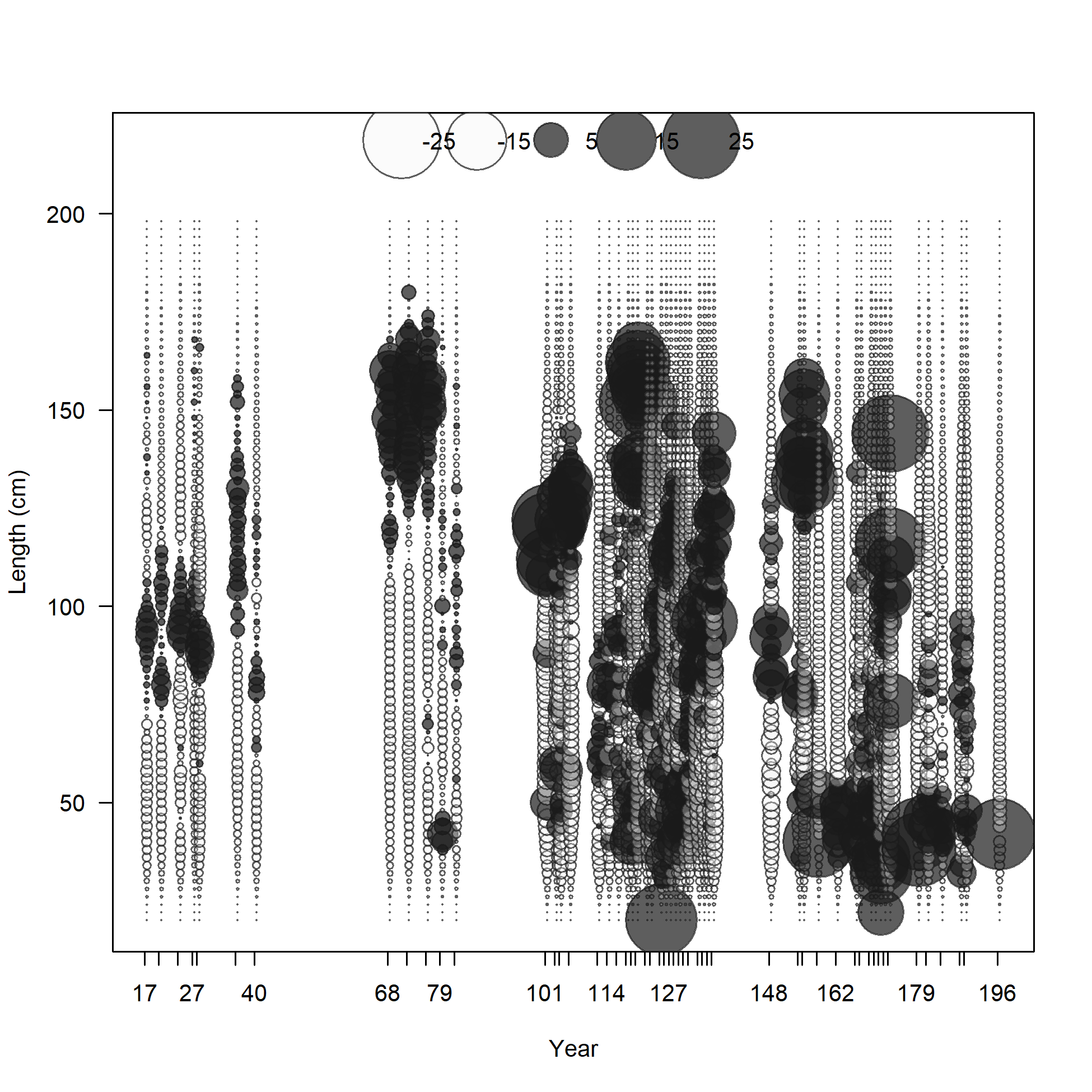 Pearson residuals, whole catch, OBJ-A1 (max=2.67) (plot 3 of 3)