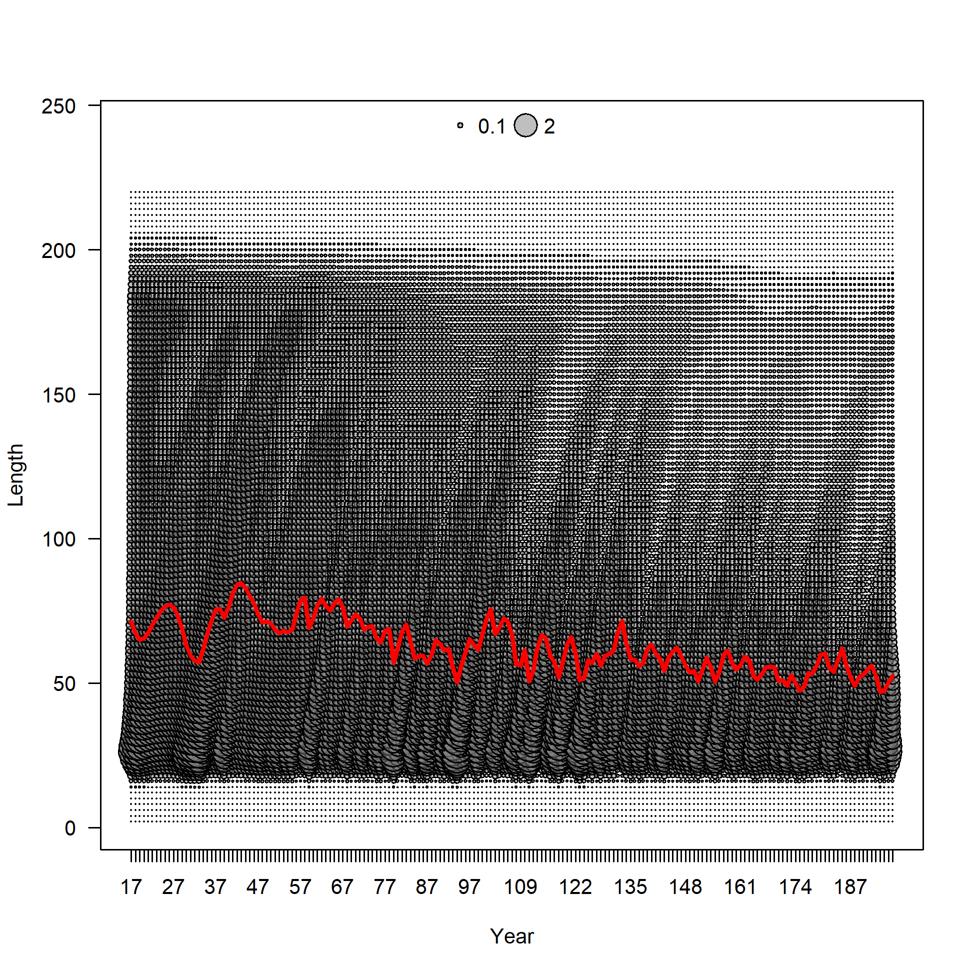 Middle of year mean length (cm) in the population
