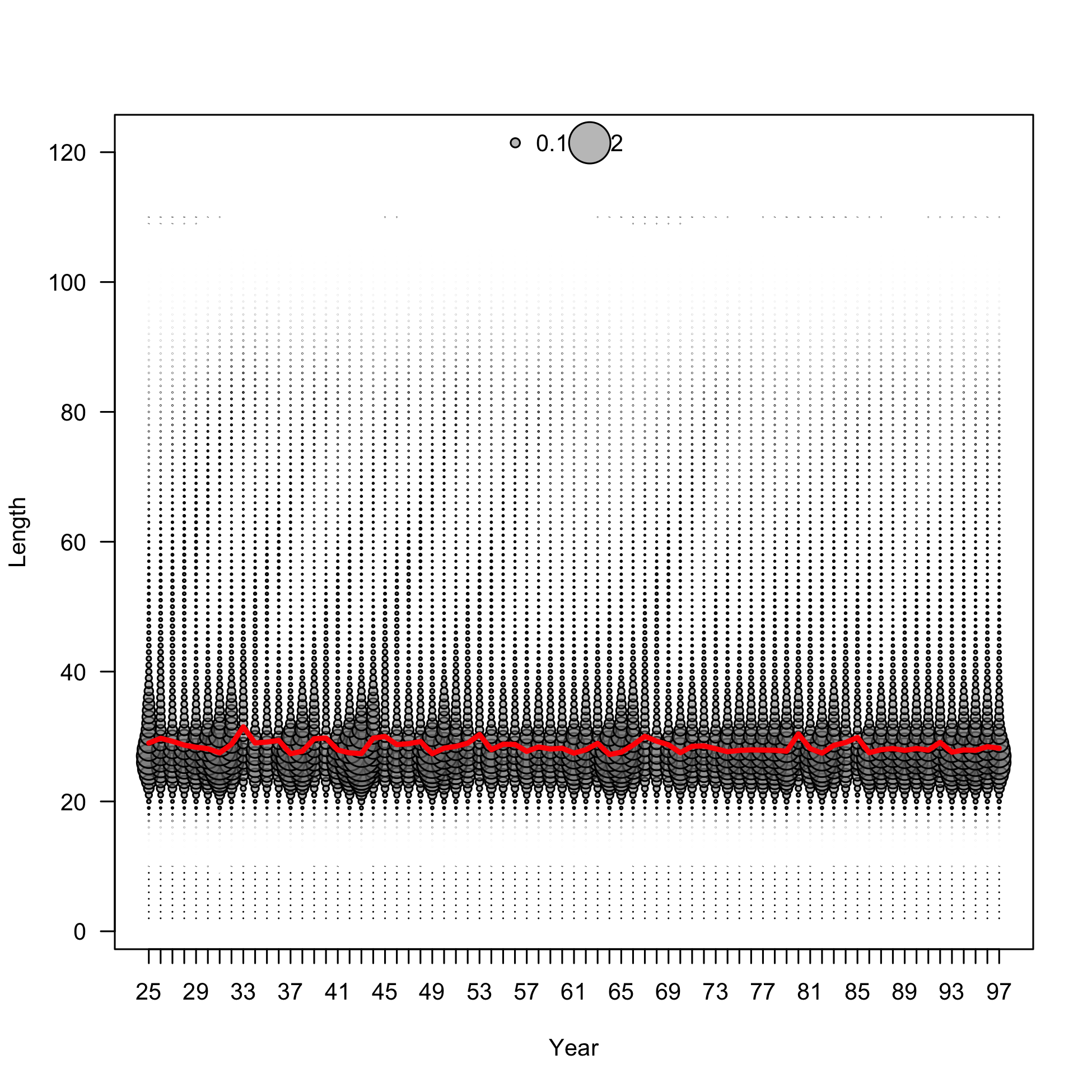Beginning of year expected numbers at length in (max ~ 6.2 billion)