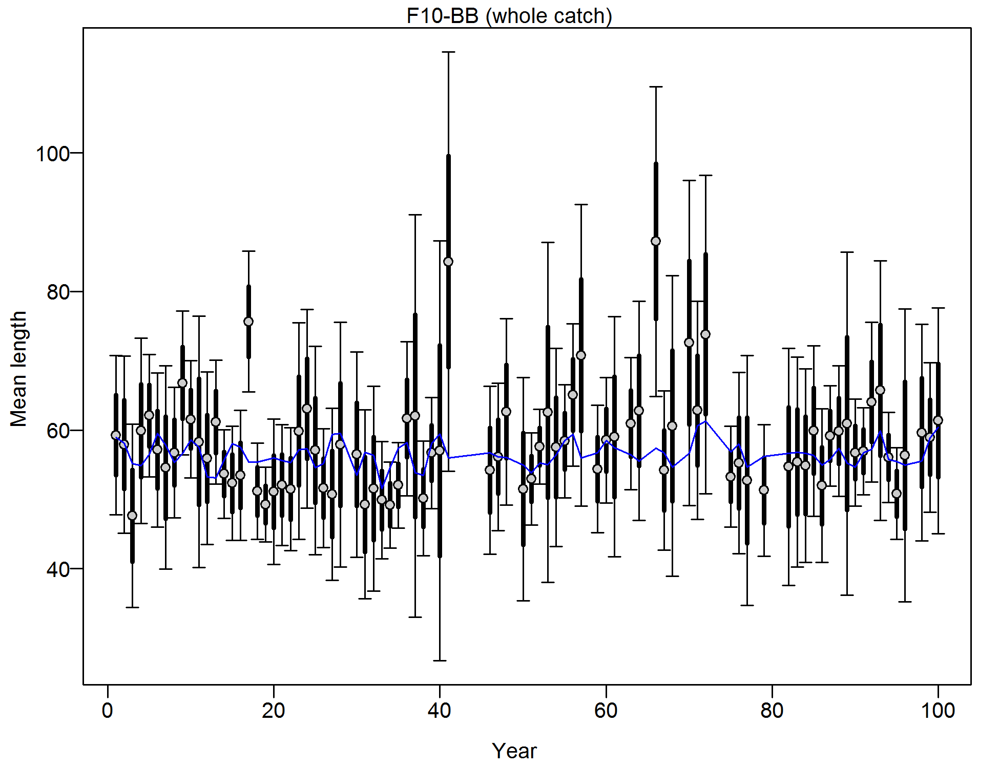 Suggested sample size adjustment (with 95% interval) for len data from F2-OBJ_C: