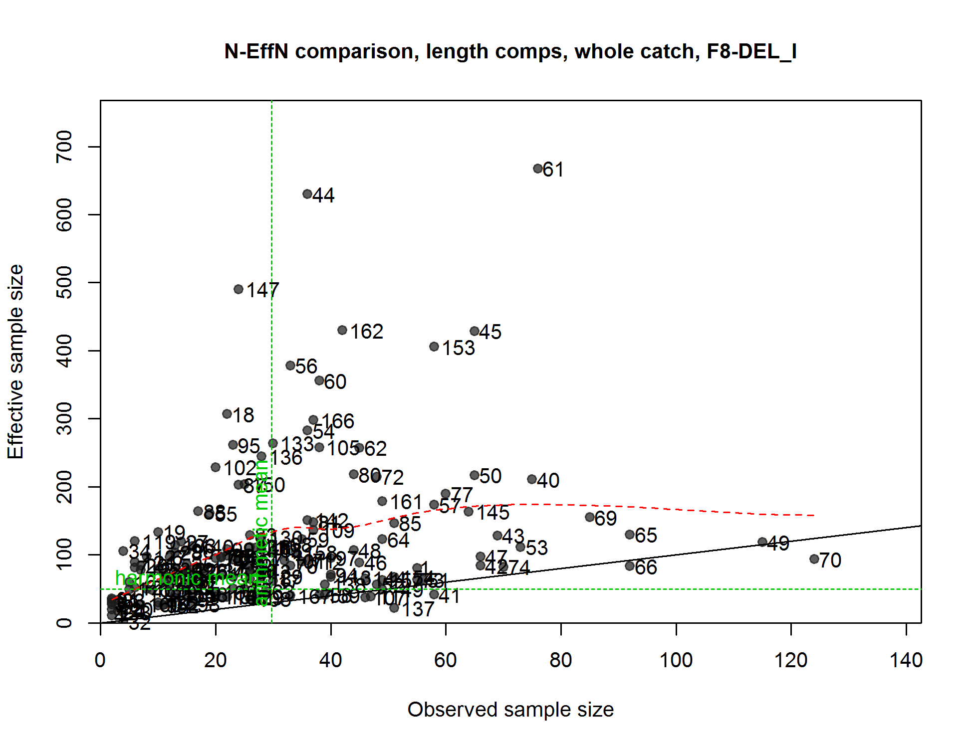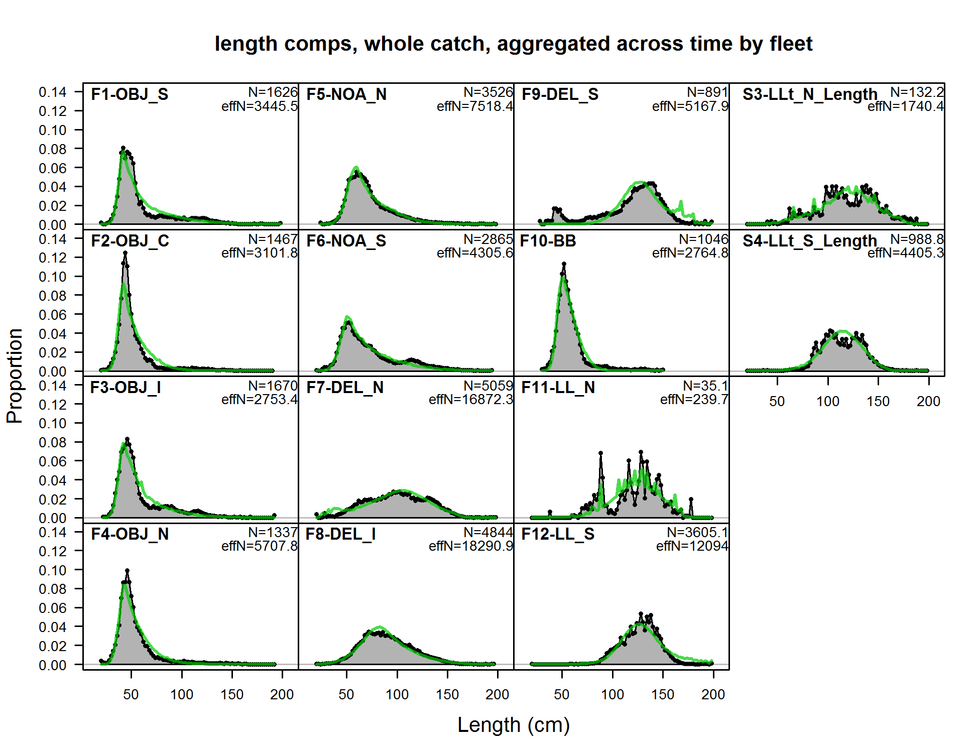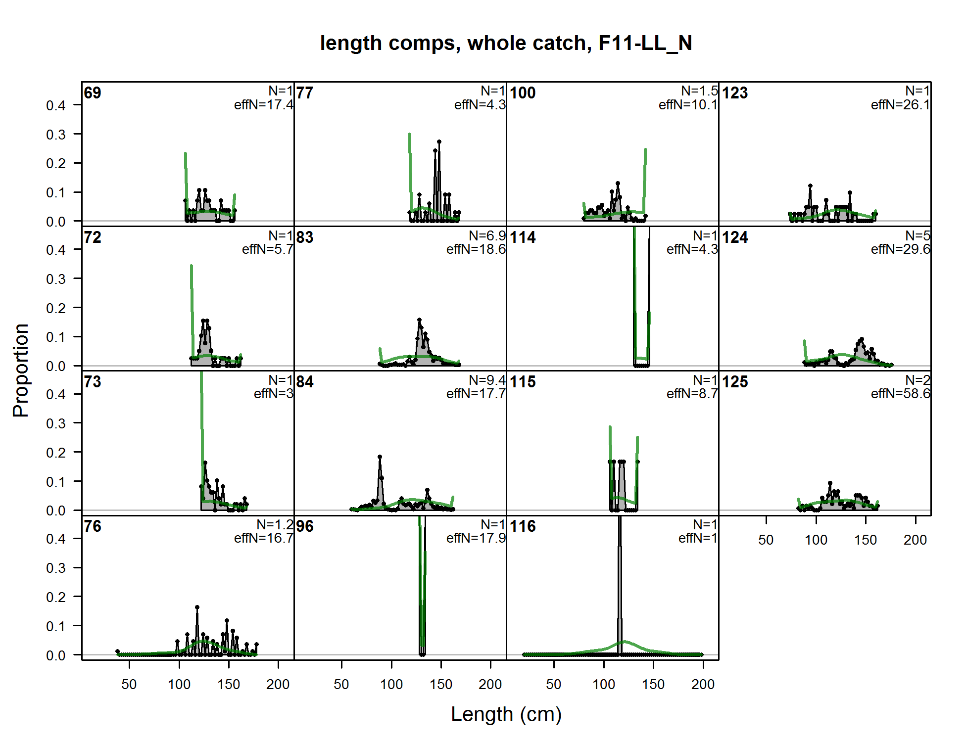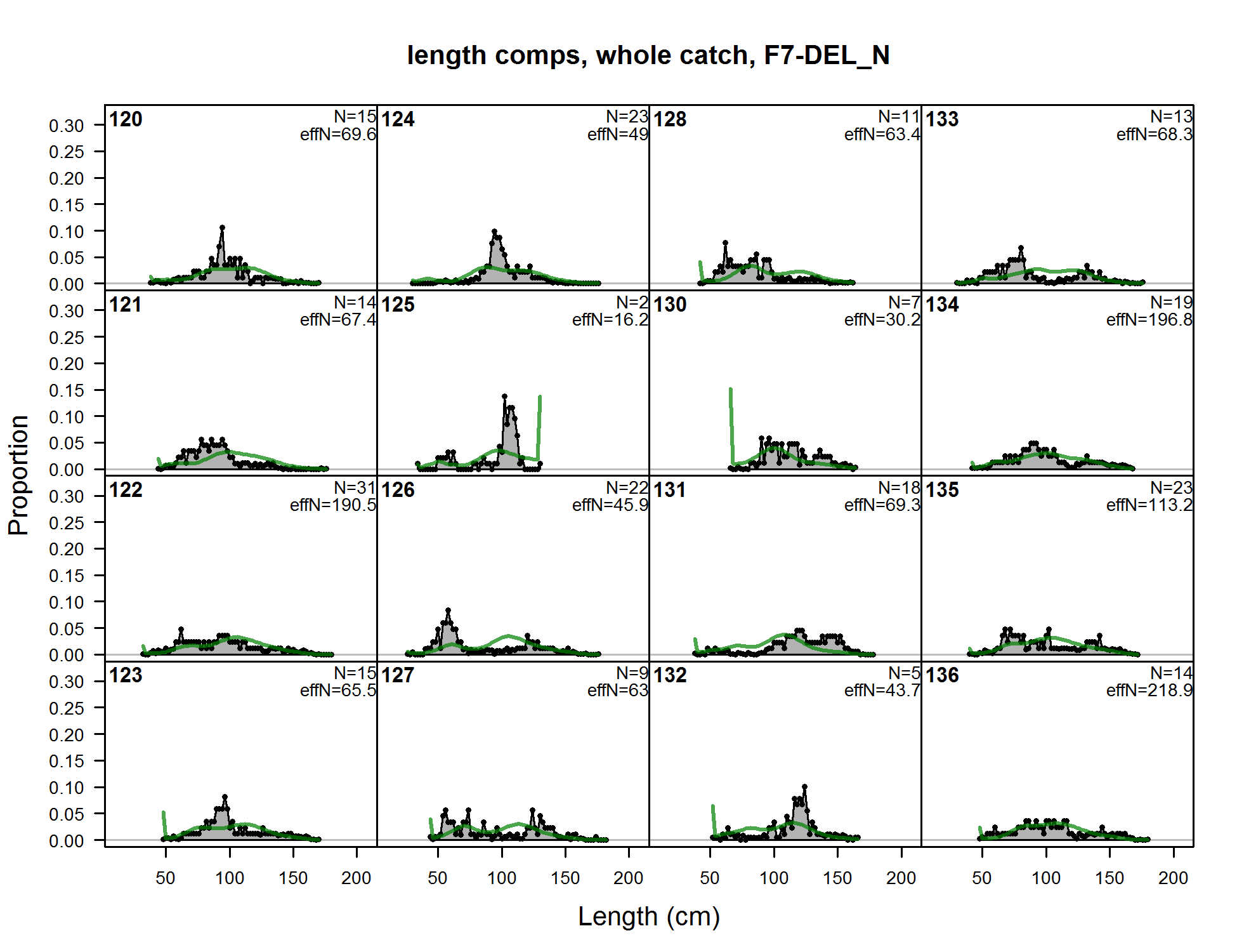 N-EffN comparison, length comps, whole catch, F3-OBJ_I