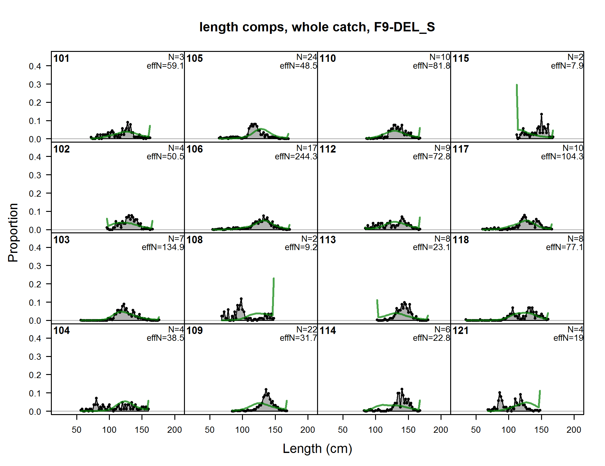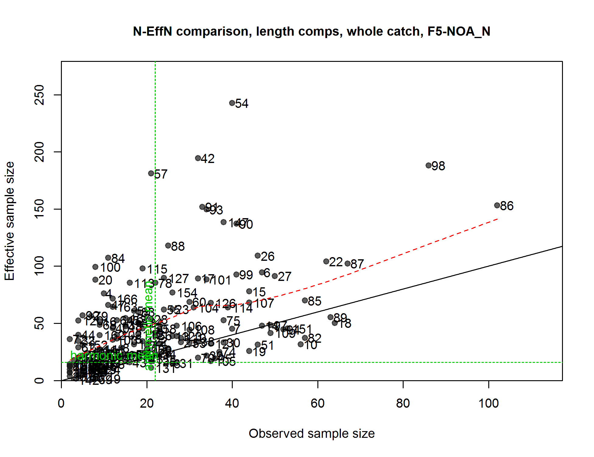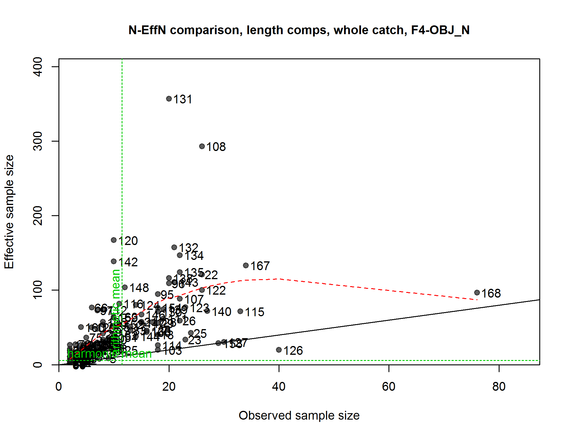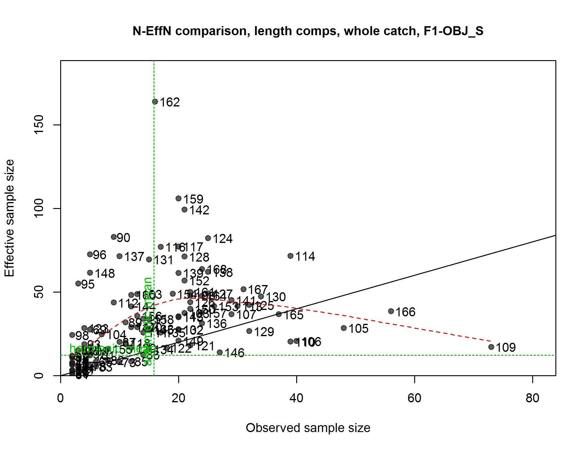 N-EffN comparison, length comps, whole catch, F1-OBJ_S