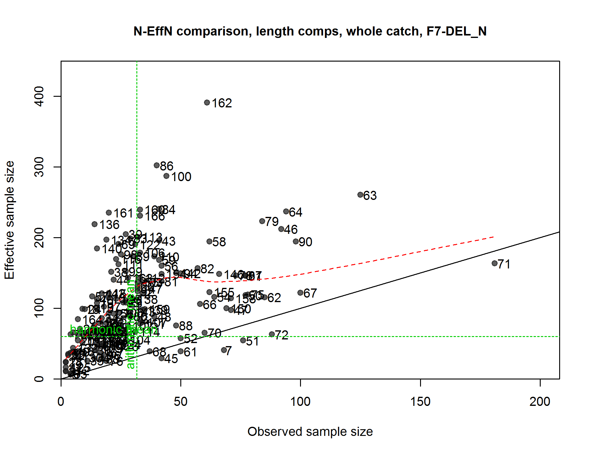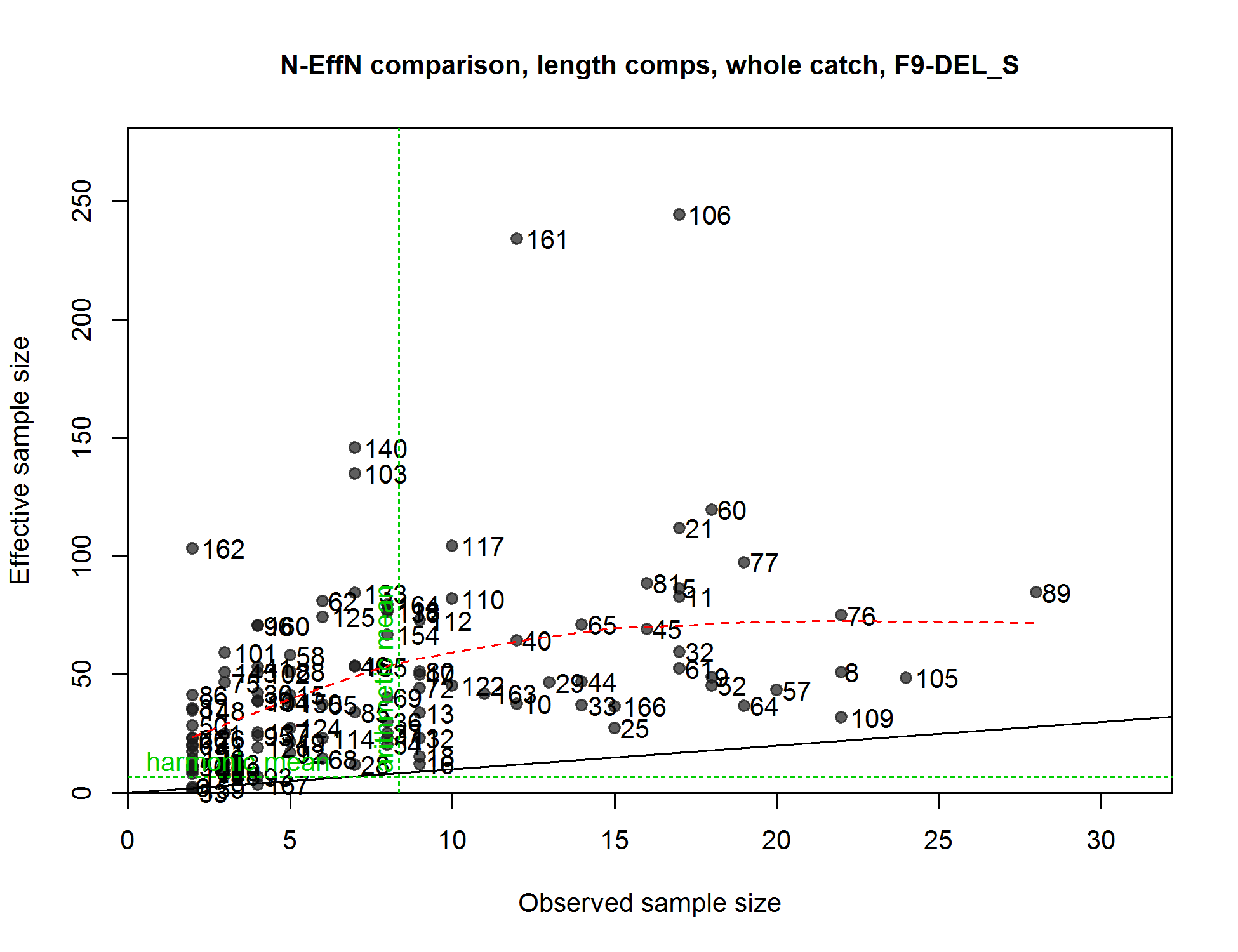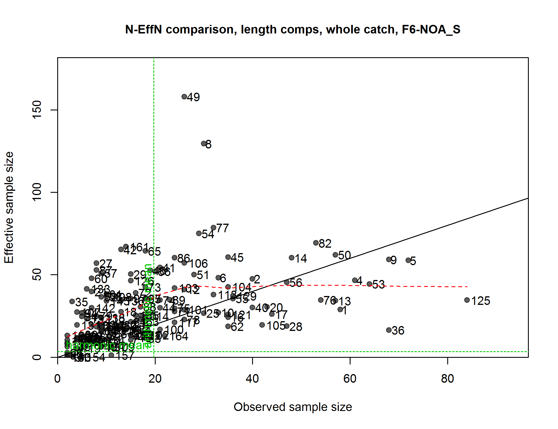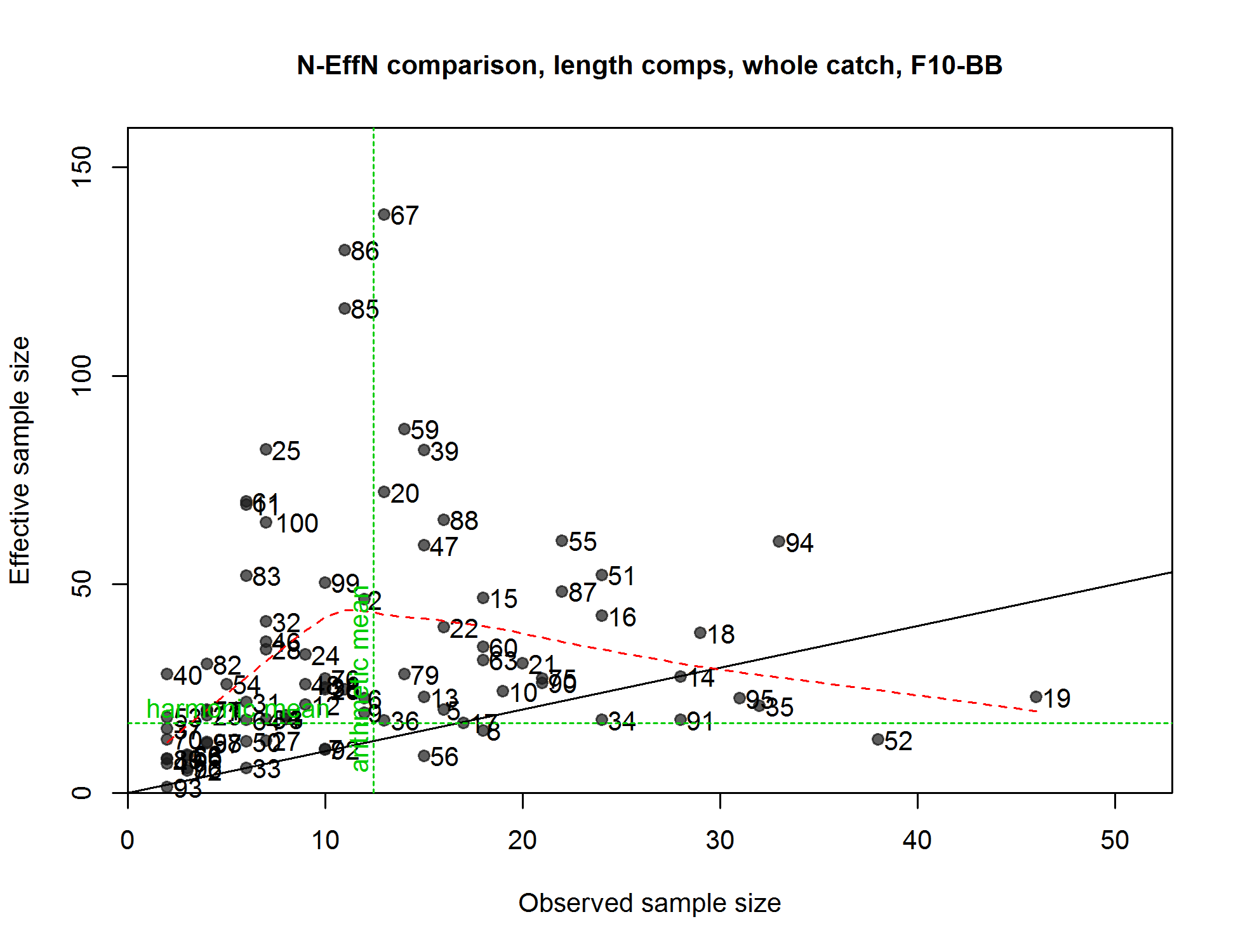N-EffN comparison, length comps, whole catch, F1-OBJ_S