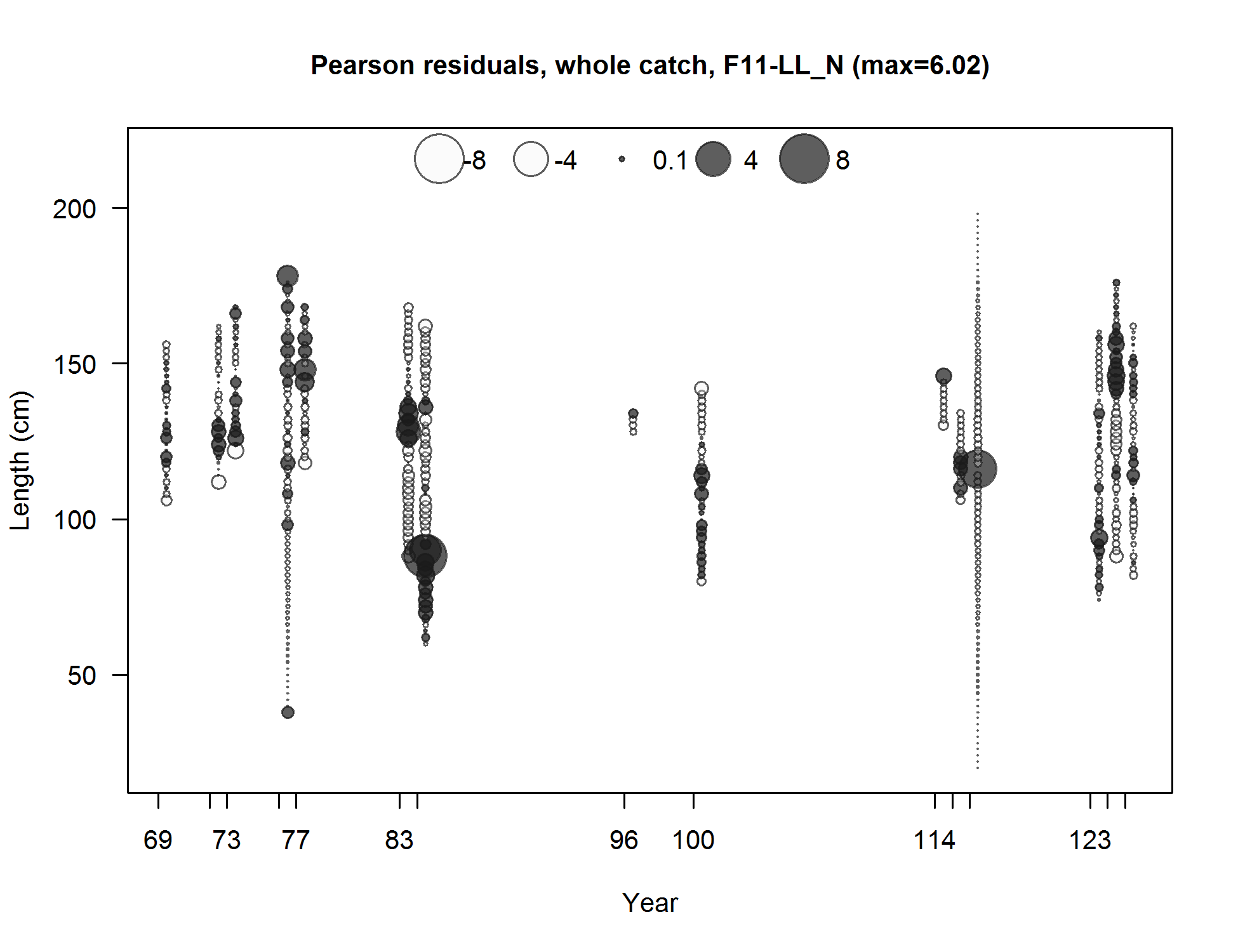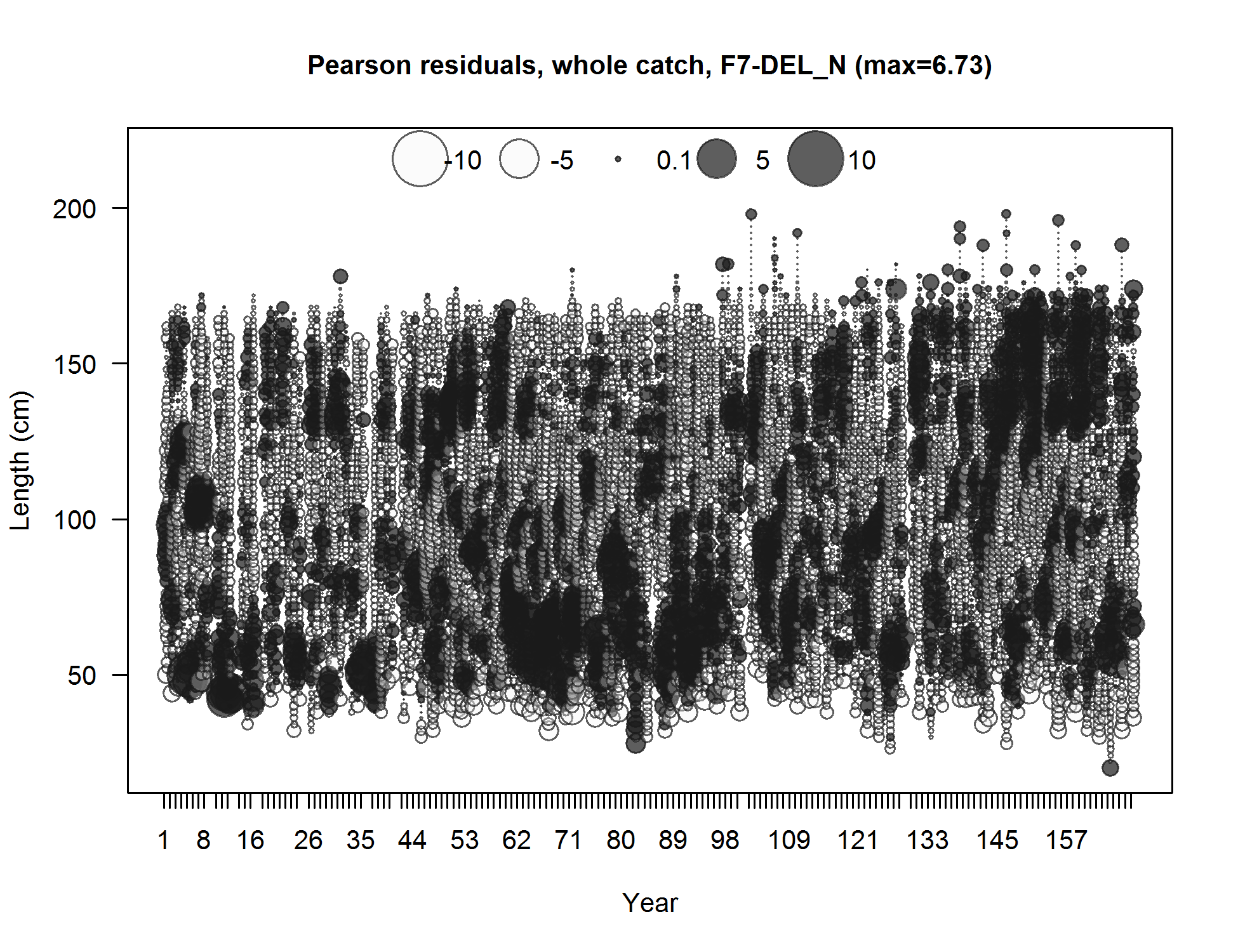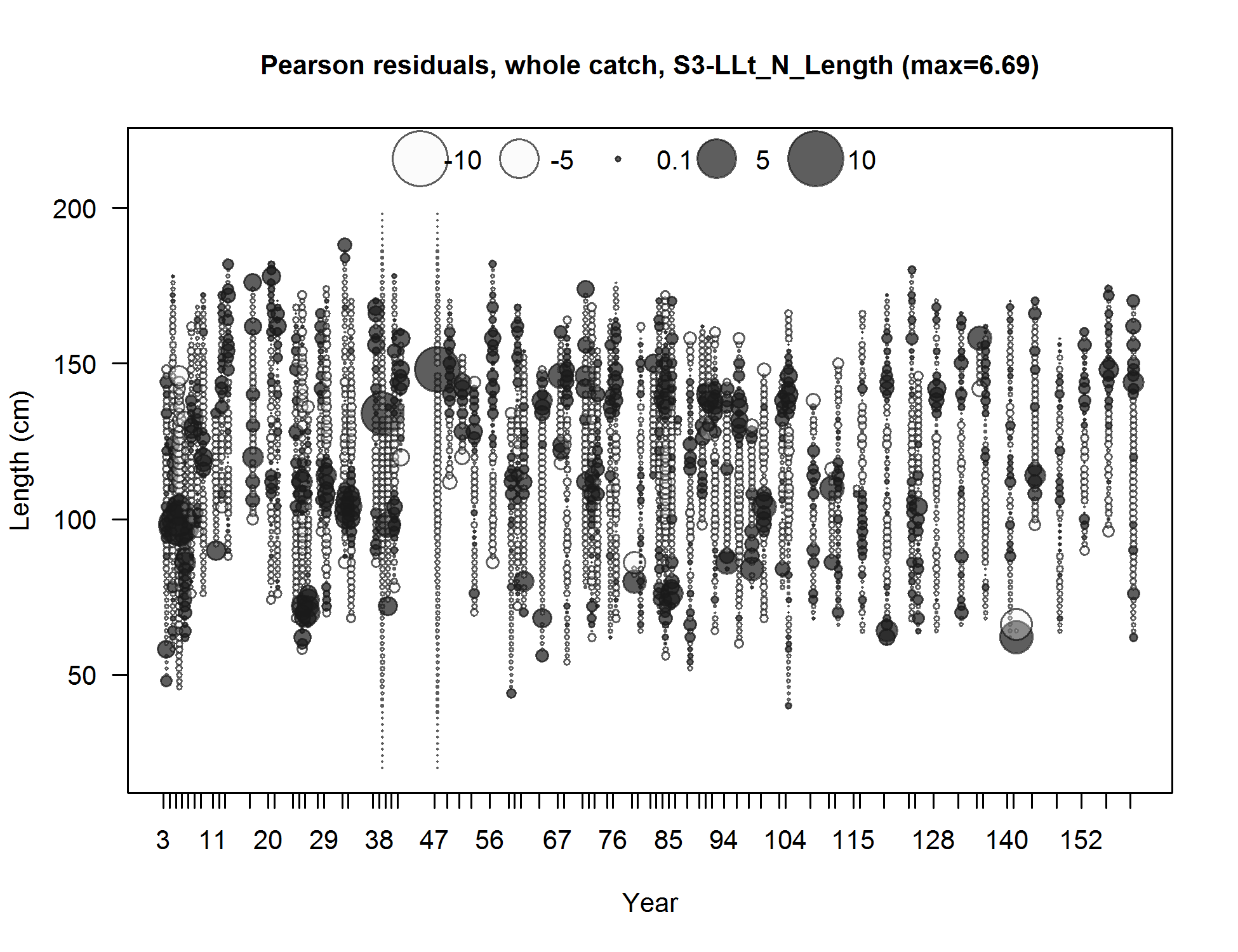 Pearson residuals, whole catch, S3-LLt_N_Length (max=6.69) (plot 5 of 5)