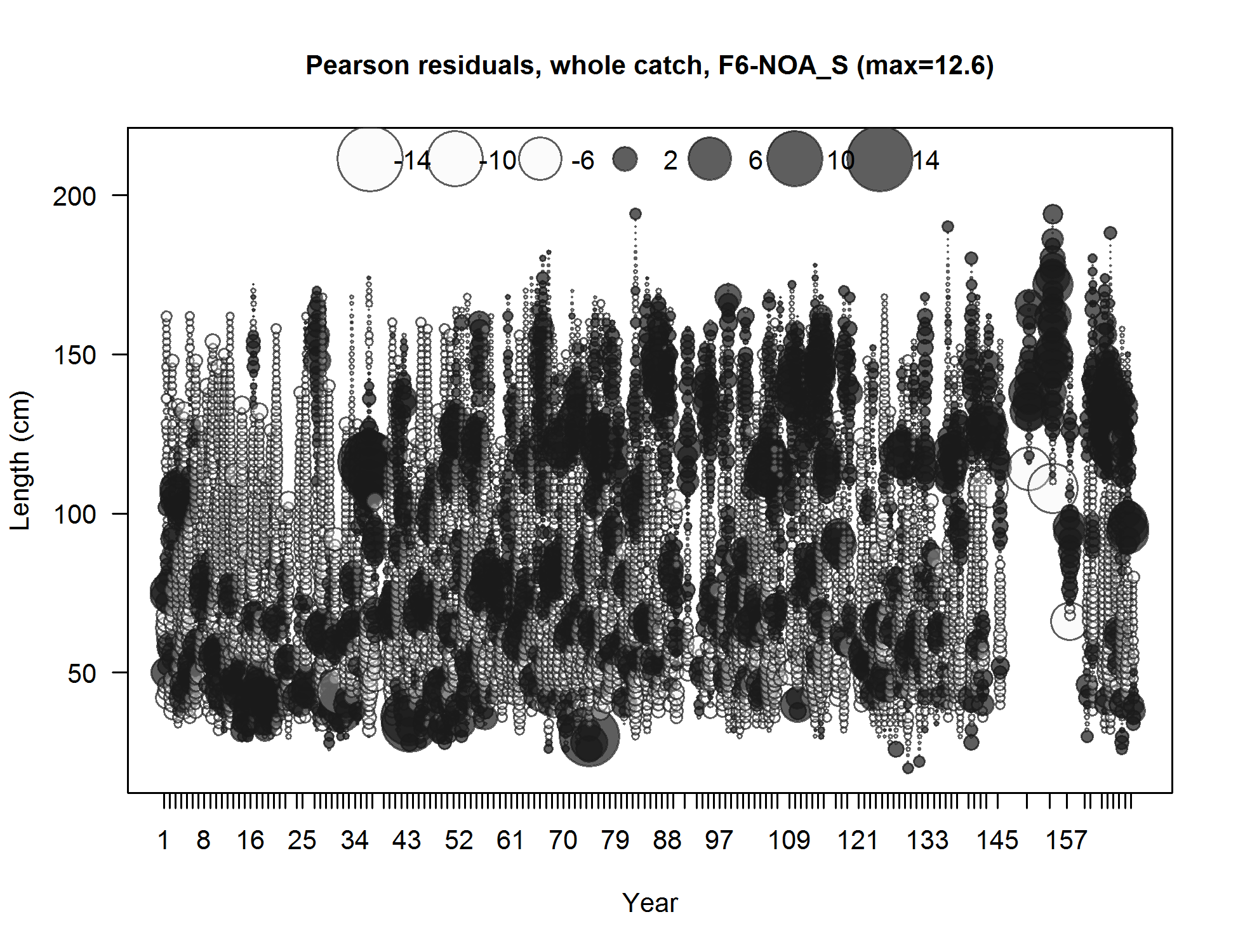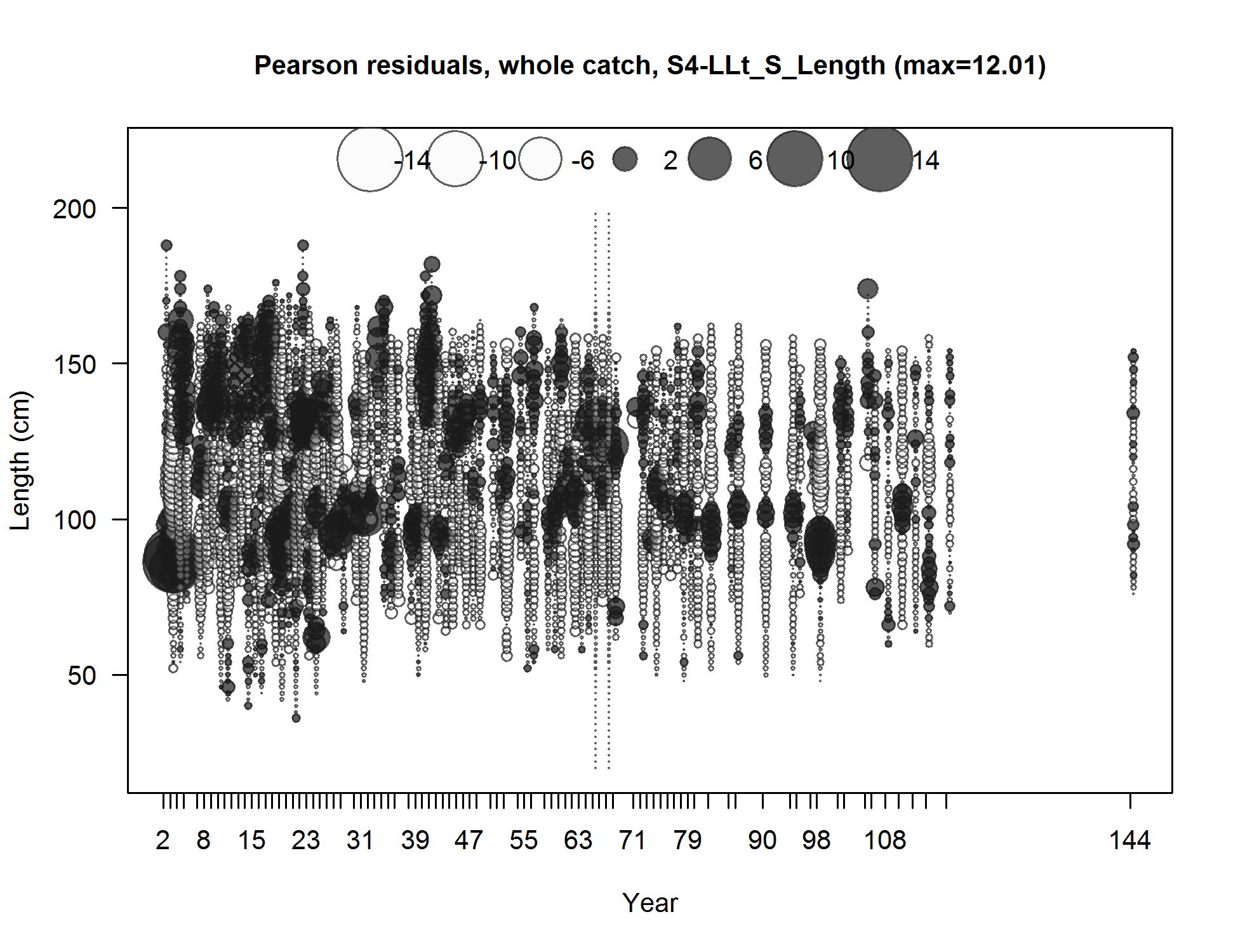 Pearson residuals, whole catch, S4-LLt_S_Length (max=12.01) (plot 6 of 6)