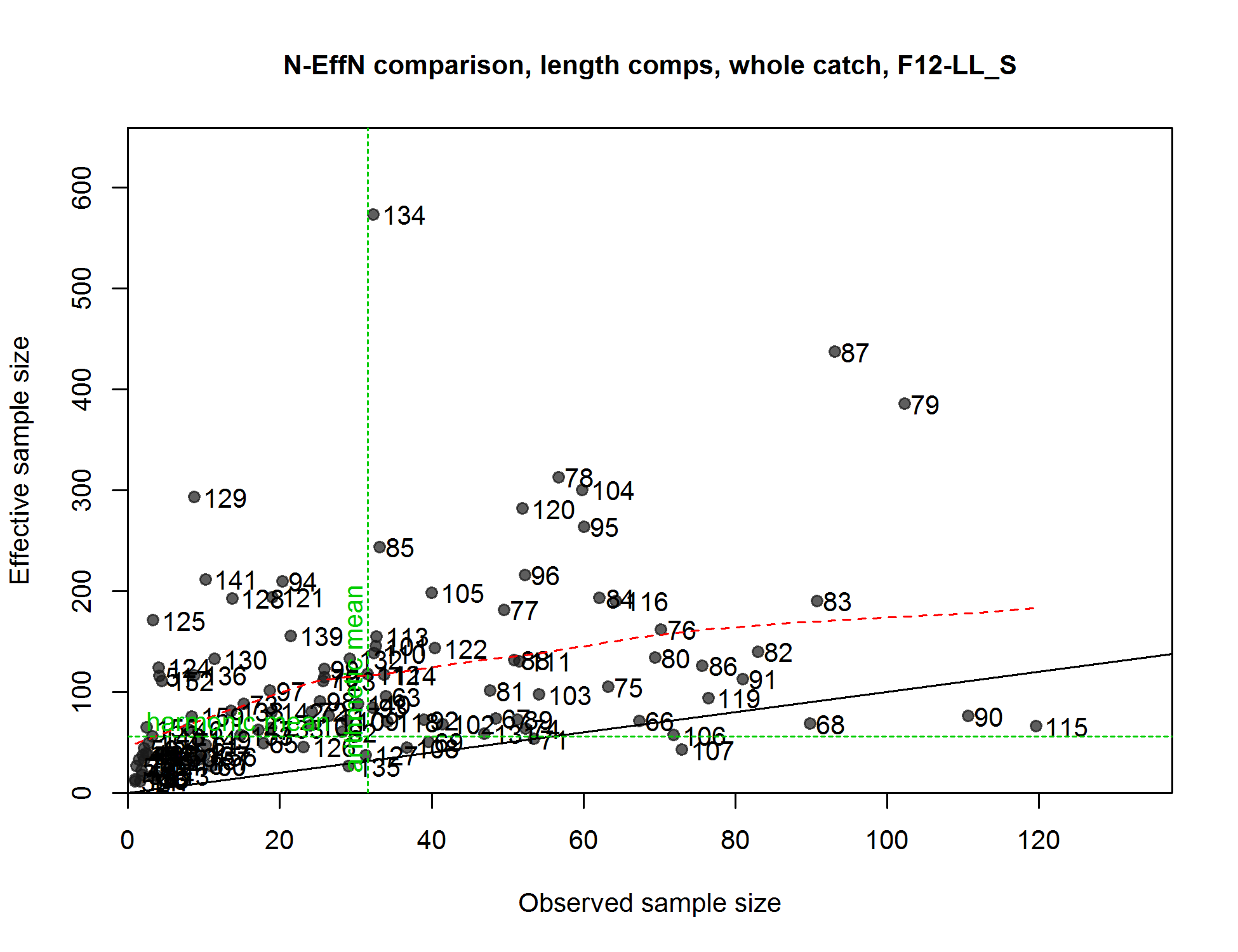 N-EffN comparison, length comps, whole catch, F12-LL_S