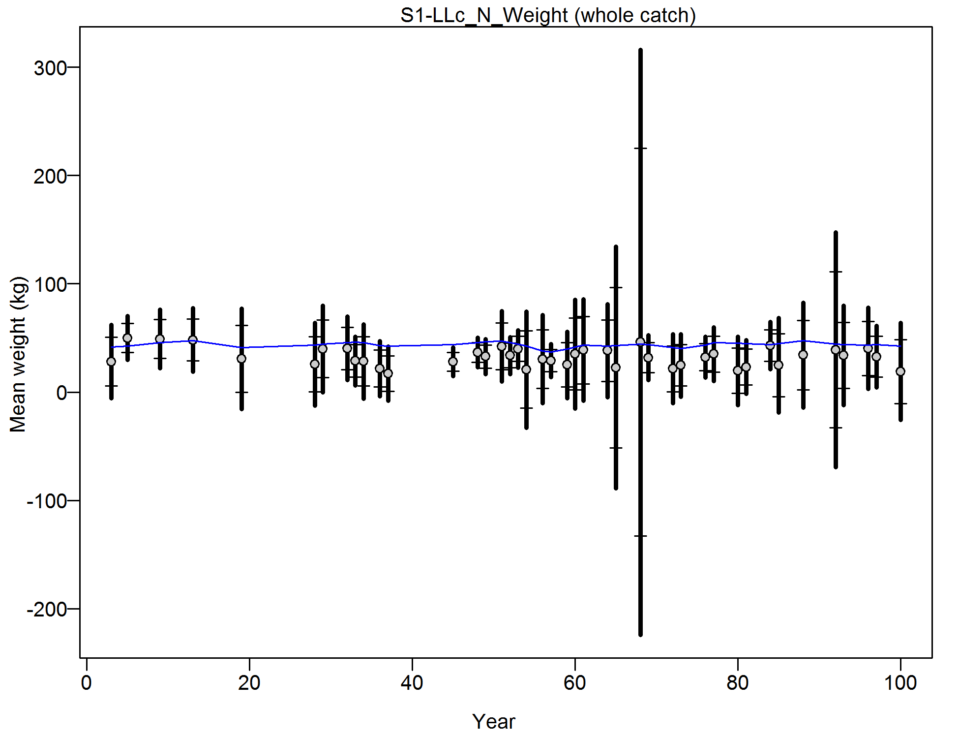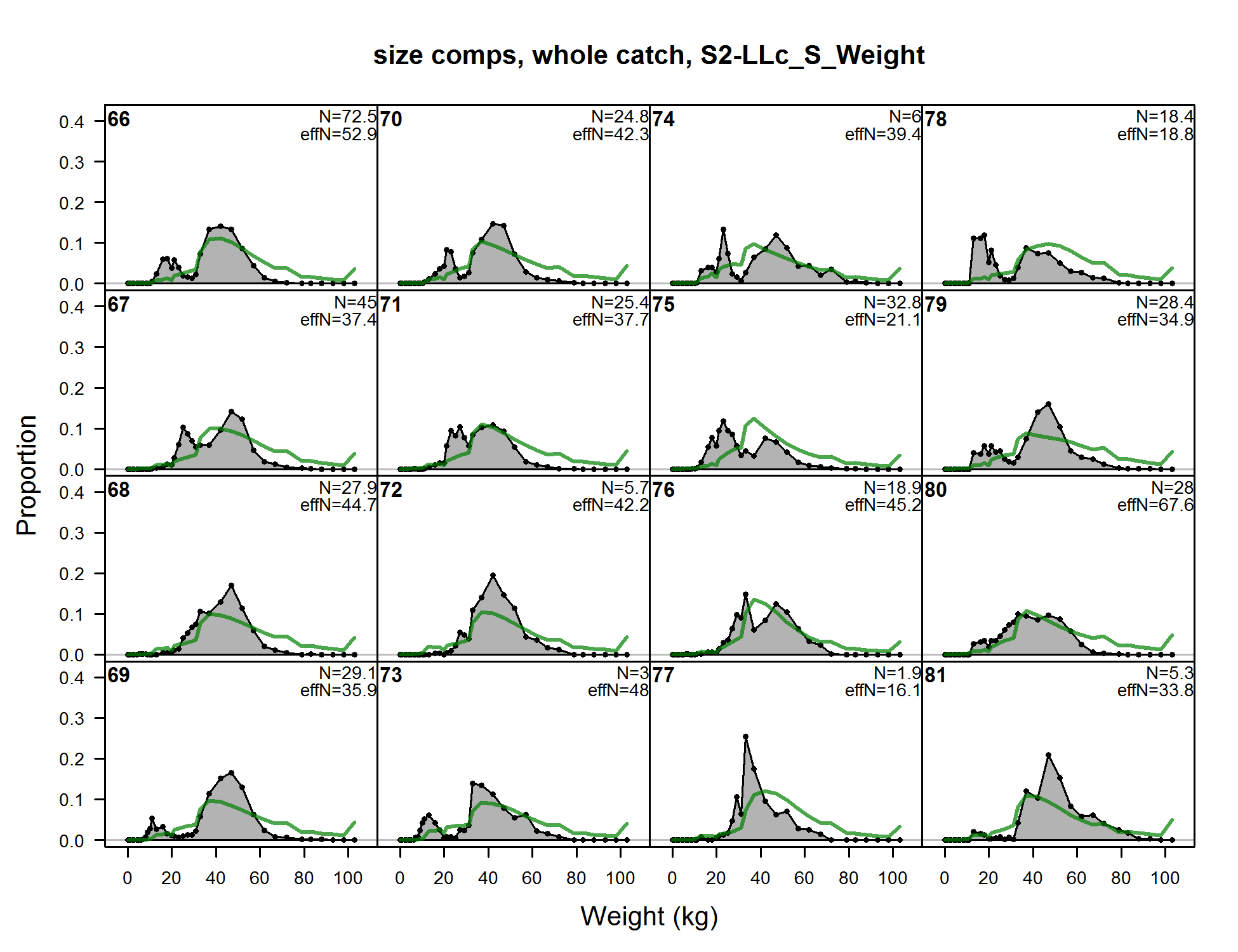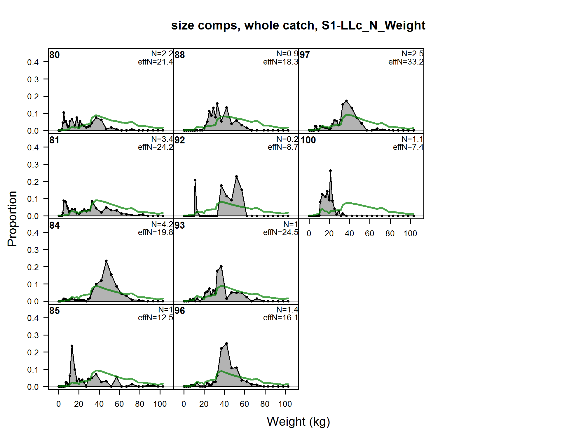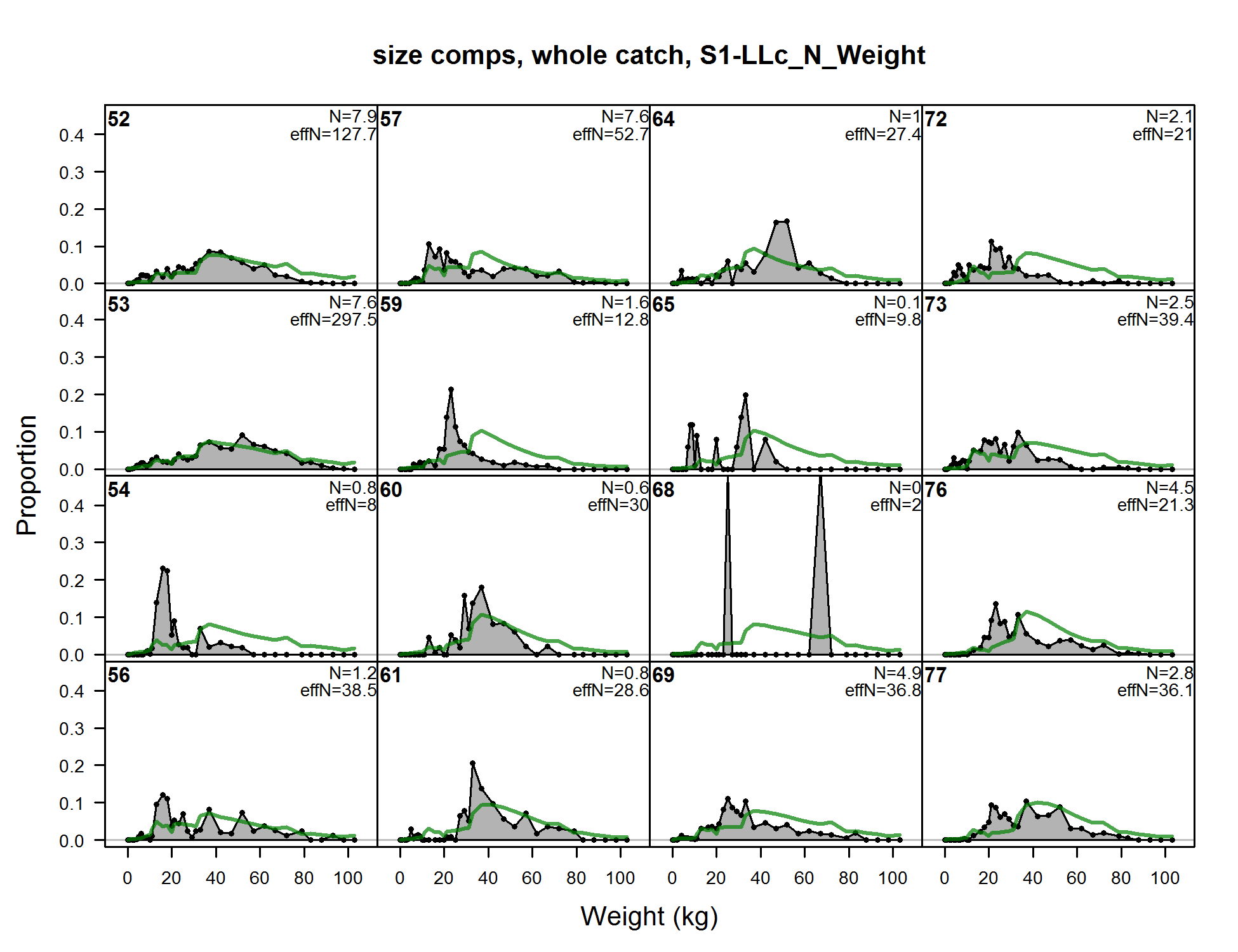 size comps, whole catch, S1-LLc_N_Weight (plot 1 of 3)