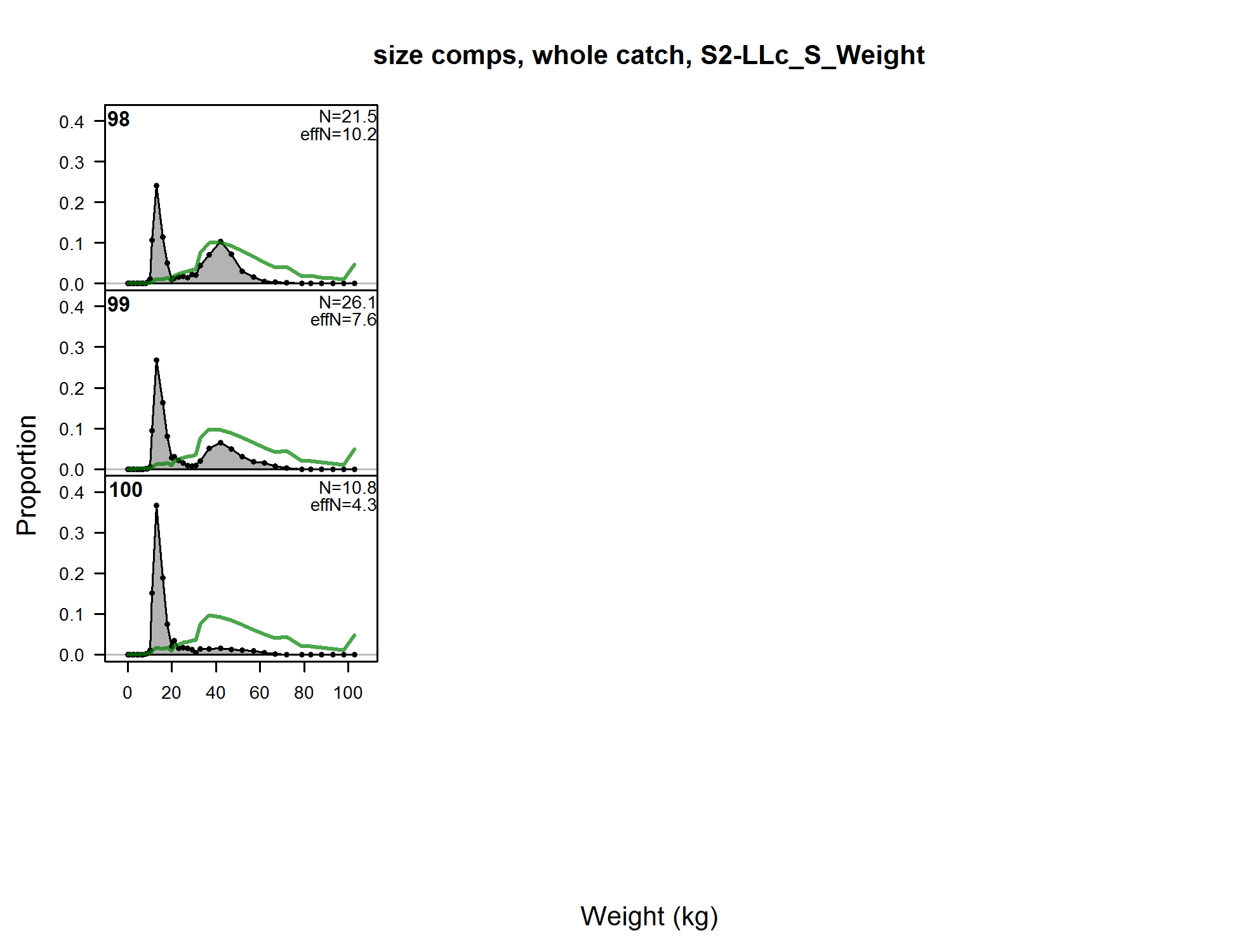 size comps, whole catch, S2-LLc_S_Weight (plot 1 of 6)