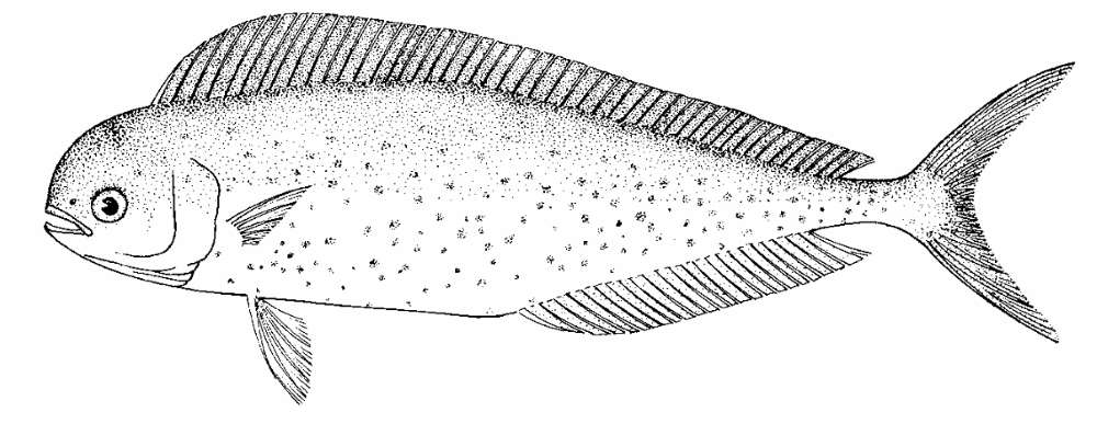 Coryphaena hippurus tiene pequeña y ovalada el área dentada de la lengua.