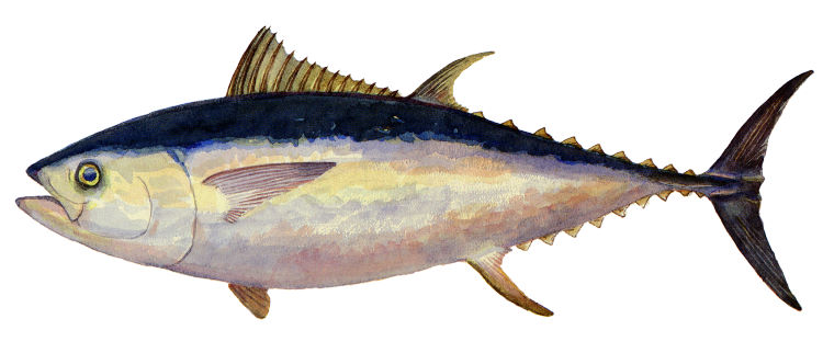 Thunnus obesus presenta la aleta pectoral más larga y alcanza hasta la mitad (en los pequeños), o más (en los grandes) de la base de la segunda aleta dorsal. T. albacares presenta la aleta pectoral más larga y alcanza hasta el borde anterior de la segunda aleta dorsal.
