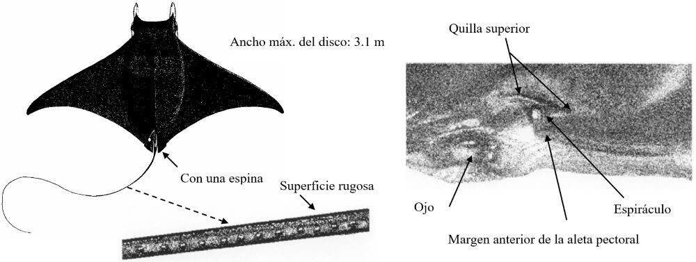 Mobula thurstoni presenta lisa la superficie de la cola.