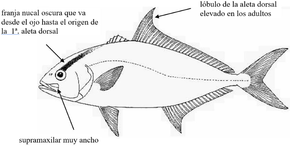 Caranx sexfasciatus y Uraspis helvola no presentan la franja nucal.
